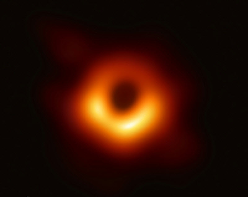 -- 首张黑洞照片 | 天文学家动用了遍布全球的8个毫米/亚毫米波射电望远镜,组成了一个“事件视界望远镜”(Event Horizon Telescope)连续进行了数天的联合观测,又经过2年的数据分析才生成这张黑洞照片。这颗黑洞位于代号为M87的星系当中,距离地球5300万光年之遥,质量相当于65亿颗太阳。