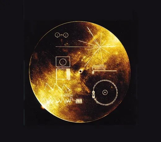 -- Voyager Interstellar record, 1977. Because the twin Voyager spacecraft would leave the solar system, astronomer Carl Sagan and others created an analog record of sights and sounds from Earth as a message to any civilization that might some day encounter it. NASA